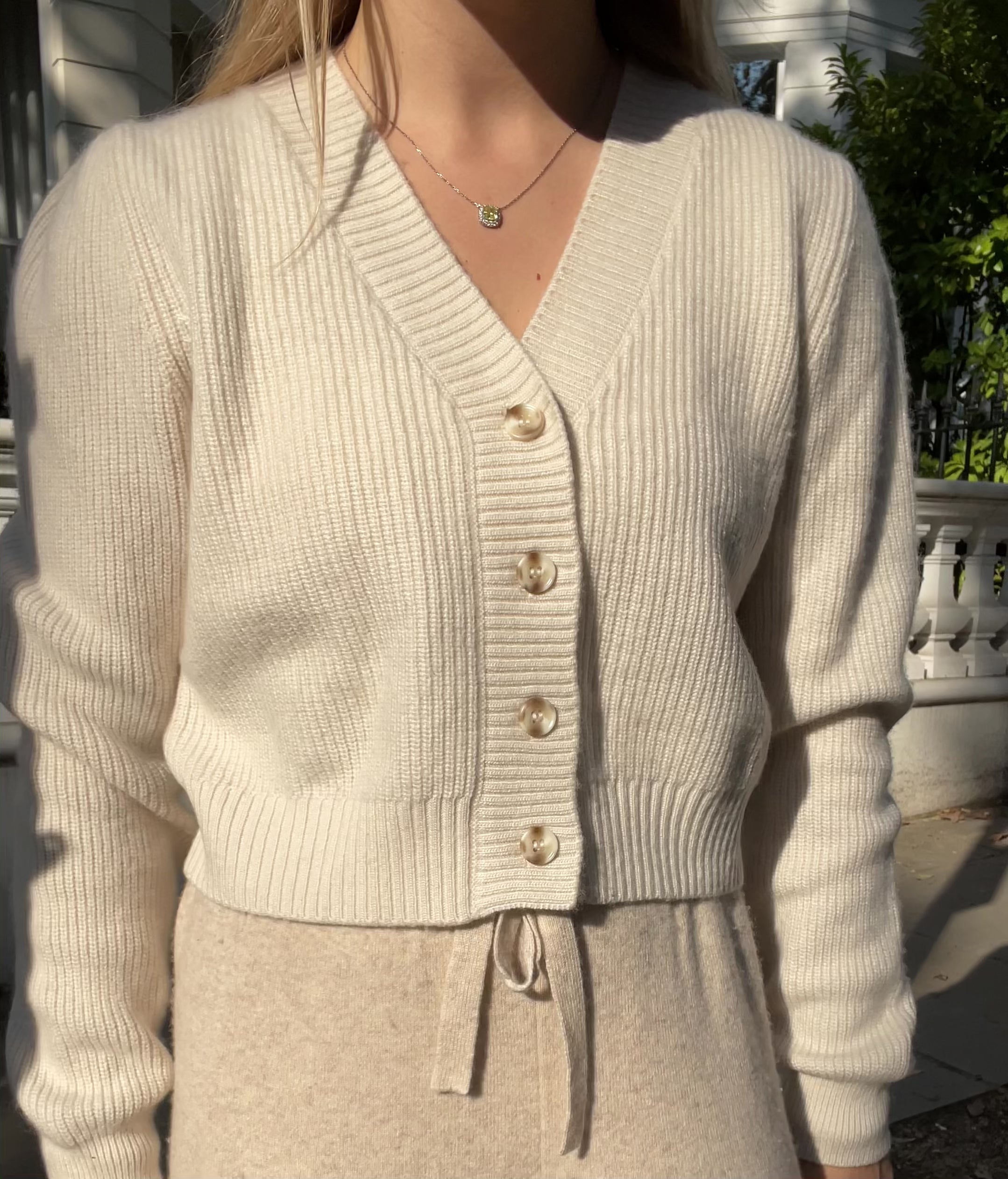 A medium weight knit with a soft, structured feel and gentle drape. Naturally breathable and warm, designed for a refined, slightly cropped silhouette.
